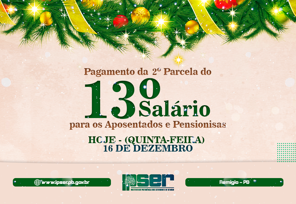 Pagamos hoje (16), a 2ª Parcela do 13º Salário aos aposentados e pensionistas do nosso município.