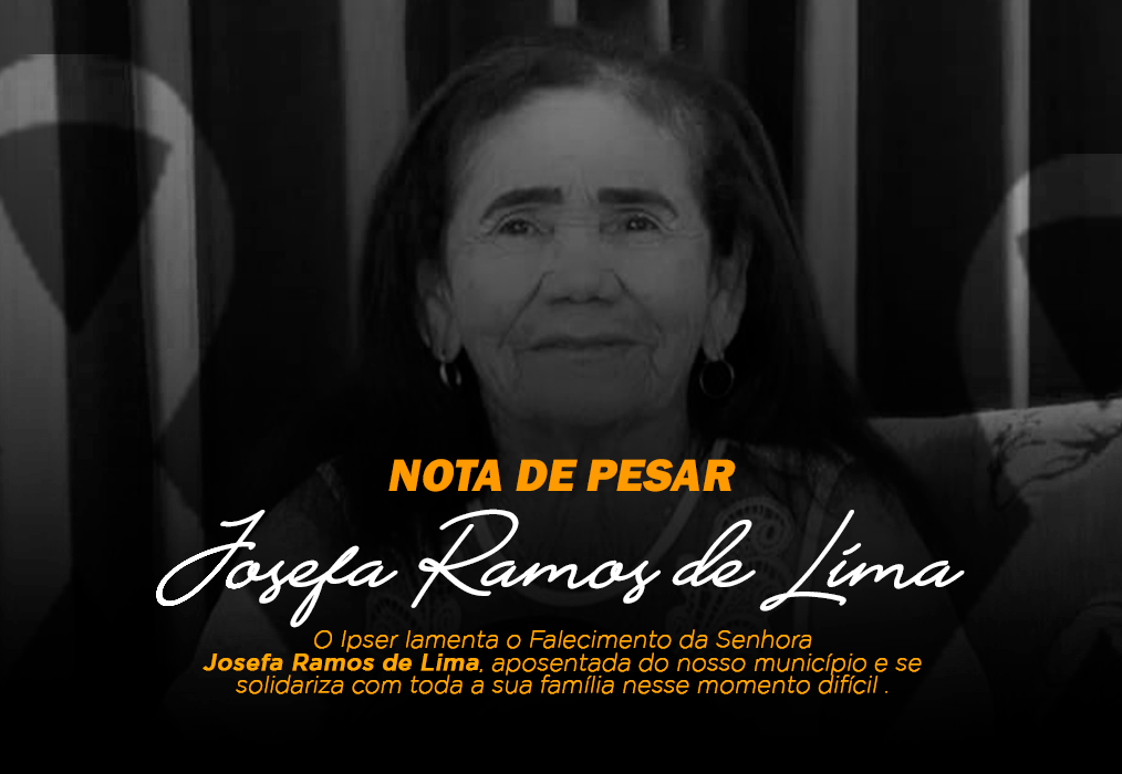 O Ipser lamenta a morte de Josefa Ramos de Lima, aposentada do nosso município e se solidariza com toda a sua família nesse momento difícil .