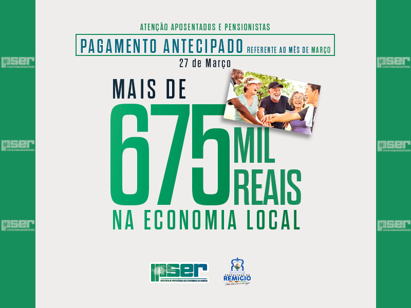 Hoje, dia 27 de Março os aposentados e pensionistas ja podem visualizar o pagamento antecipado referente ao mês atual. São mais de 675 mil reais injetados na economia local, reforçando o compromisso da gestão do Ipser com todos!