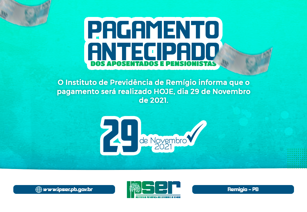 O IPSER realiza hoje o pagamento dos aposentados e pensionistas do município de Remígio.